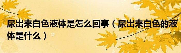 大家好,知識小編來為大家解答以上的問題。尿出來白色液體是怎么回事,尿出來白色的液體是什么很多人還不知道,現(xiàn)在讓我們一起來看看吧!