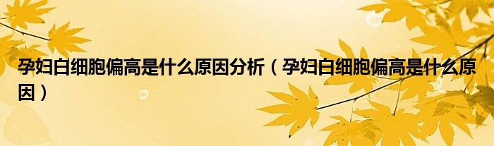大家好,知識小編來為大家解答以上的問題。孕婦白細(xì)胞偏高是什么原因分析,孕婦白細(xì)胞偏高是什么原因很多人還不知道,現(xiàn)在讓我們一起來看看吧!