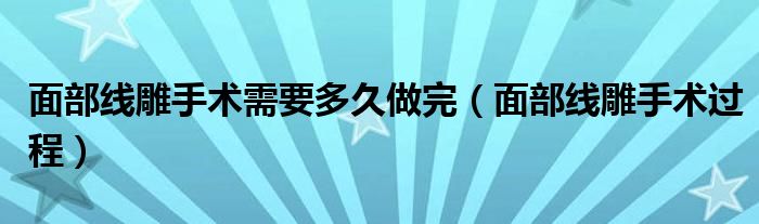 摘要大家好,知識小編來為大家解答以上的問題。面部線雕手術(shù)需要多久做完,面部線雕手術(shù)過程很多人還不知道,現(xiàn)在讓我們一起來看看吧!面部線雕