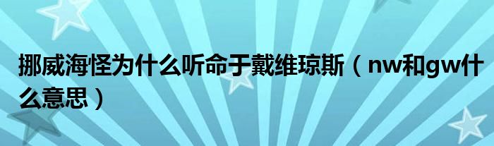 大家好,小生來為大家講解下。挪威海怪為什么聽命于戴維瓊斯,nw和gw什么意思很多人還不知道,現(xiàn)在讓我們一起來看看吧!