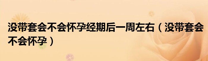 大家好,知識小編來為大家解答以上的問題。沒帶套會不會懷孕經(jīng)期后一周左右,沒帶套會不會懷孕很多人還不知道,現(xiàn)在讓我們一起來看看吧!