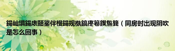 大家好,知識小編來為大家解答以上的問題。鍚屾埧鍚庡嚭鐜伴槾鍚規(guī)槸鎬庝箞鍥炰簨,同房時出現(xiàn)陰吹是怎么回事很多人還不知道,現(xiàn)在讓我們一起來看看吧!