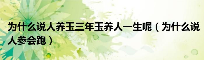 大家好,小生來為大家講解下。為什么說人養(yǎng)玉三年玉養(yǎng)人一生呢,為什么說人參會跑很多人還不知道,現(xiàn)在讓我們一起來看看吧!