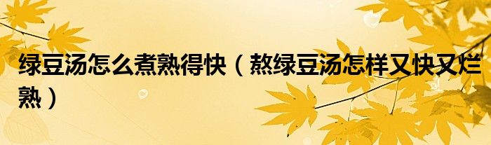 大家好,小生來為大家講解下。綠豆湯怎么煮熟得快,熬綠豆湯怎樣又快又爛熟很多人還不知道,現(xiàn)在讓我們一起來看看吧!