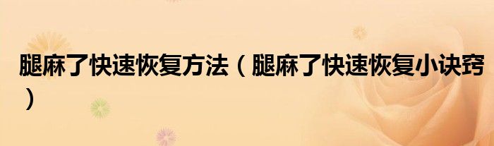 大家好,知識(shí)小編來為大家解答以上的問題。腿麻了快速恢復(fù)方法,腿麻了快速恢復(fù)小訣竅很多人還不知道,現(xiàn)在讓我們一起來看看吧!