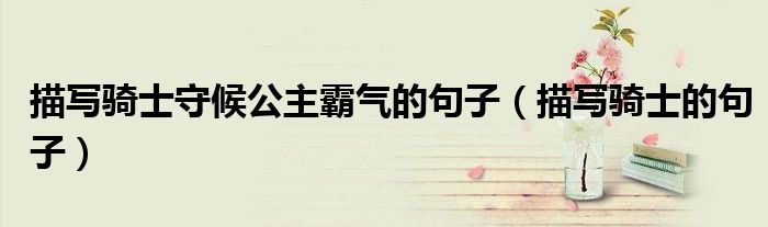 大家好,小生來為大家講解下。描寫騎士守候公主霸氣的句子,描寫騎士的句子很多人還不知道,現(xiàn)在讓我們一起來看看吧!