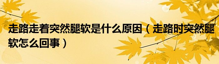 摘要大家好,知識(shí)小編來(lái)為大家解答以上的問(wèn)題。走路走著突然腿軟是什么原因,走路時(shí)突然腿軟怎么回事很多人還不知道,現(xiàn)在讓我們一起來(lái)看看吧!