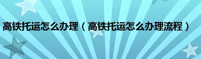 大家好,小生來為大家講解下。高鐵托運怎么辦理,高鐵托運怎么辦理流程很多人還不知道,現(xiàn)在讓我們一起來看看吧!