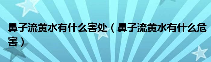 大家好,知識(shí)小編來為大家解答以上的問題。鼻子流黃水有什么害處,鼻子流黃水有什么危害很多人還不知道,現(xiàn)在讓我們一起來看看吧!