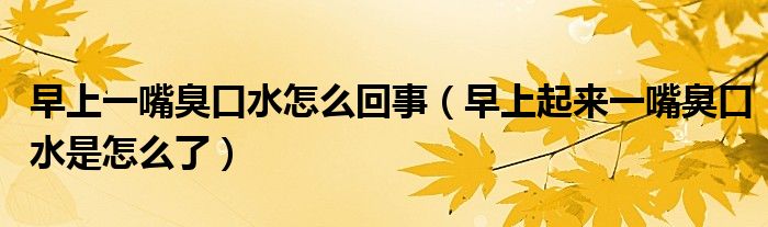 大家好,知識小編來為大家解答以上的問題。早上一嘴臭口水怎么回事,早上起來一嘴臭口水是怎么了很多人還不知道,現(xiàn)在讓我們一起來看看吧!