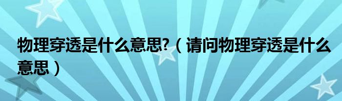 大家好,小生來為大家講解下。物理穿透是什么意思?,請問物理穿透是什么意思很多人還不知道,現在讓我們一起來看看吧!