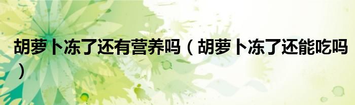 大家好,小生來為大家講解下。胡蘿卜凍了還有營養(yǎng)嗎,胡蘿卜凍了還能吃嗎很多人還不知道,現在讓我們一起來看看吧!
