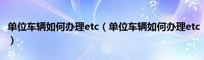 1、車主都知道如何為自己的車辦理ETC,但是單位公用車輛很難辦理。的確,單位車輛ETC的處理過程不同于個人。今天,我將向你解釋有關(guān)單位車輛處理等知識。