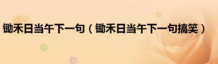 大家好,小生來為大家講解下。鋤禾日當午下一句,鋤禾日當午下一句搞笑很多人還不知道,現(xiàn)在讓我們一起來看看吧!
