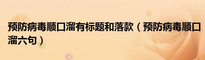 大家好,小生來為大家講解下。預防病毒順口溜有標題和落款,預防病毒順口溜六句很多人還不知道,現(xiàn)在讓我們一起來看看吧!