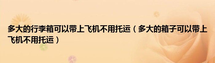 大家好,小生來(lái)為大家講解下。多大的行李箱可以帶上飛機(jī)不用托運(yùn),多大的箱子可以帶上飛機(jī)不用托運(yùn)很多人還不知道,現(xiàn)在讓我們一起來(lái)看看吧!