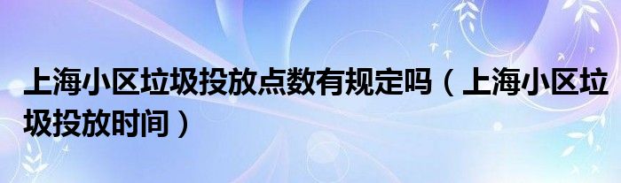 大家好,小生來為大家講解下。上海小區(qū)垃圾投放點(diǎn)數(shù)有規(guī)定嗎,上海小區(qū)垃圾投放時(shí)間很多人還不知道,現(xiàn)在讓我們一起來看看吧!