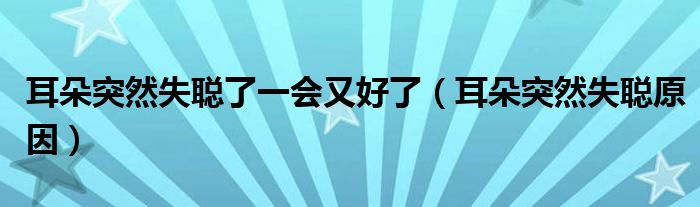 大家好,知識小編來為大家解答以上的問題。耳朵突然失聰了一會又好了,耳朵突然失聰原因很多人還不知道,現(xiàn)在讓我們一起來看看吧!