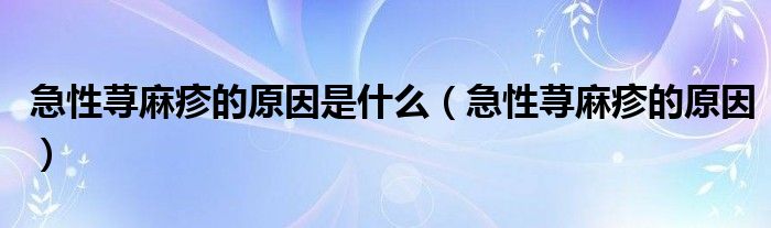 大家好,知識小編來為大家解答以上的問題。急性蕁麻疹的原因是什么,急性蕁麻疹的原因很多人還不知道,現(xiàn)在讓我們一起來看看吧!