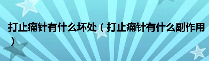 大家好,知識小編來為大家解答以上的問題。打止痛針有什么壞處,打止痛針有什么副作用很多人還不知道,現(xiàn)在讓我們一起來看看吧!