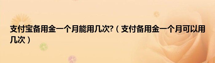 大家好,小生來為大家講解下。支付寶備用金一個月能用幾次?,支付備用金一個月可以用幾次很多人還不知道,現(xiàn)在讓我們一起來看看吧!