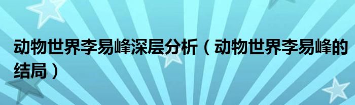大家好,小生來為大家講解下。動(dòng)物世界李易峰深層分析,動(dòng)物世界李易峰的結(jié)局很多人還不知道,現(xiàn)在讓我們一起來看看吧!
