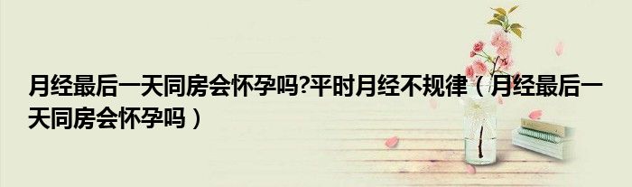 摘要大家好,知識小編來為大家解答以上的問題。月經最后一天同房會懷孕嗎?平時月經不規(guī)律,月經最后一天同房會懷孕嗎很多人還不知道,現(xiàn)在讓我