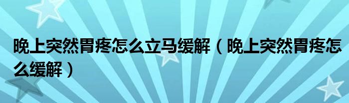 晚上突然胃疼,如果是受涼引起的胃痙攣,可以吃溫開水或者用溫開水袋,有助于緩解胃痙攣,緩解胃痛。如果胃疼是因?yàn)橥聿统缘牟缓线m,太辣,可能是胃酸刺激胃黏膜引起的。你可以吃一些饅頭和小蘇打餅干來幫助緩解胃痛。如果嚴(yán)重的話,就要用一些酸性抑制劑,比如質(zhì)子泵抑制劑,比如奧美拉唑、艾司洛爾、雷貝拉唑等。如果胃痛不是很嚴(yán)重,還可以使用一些胃黏膜保護(hù)劑,如鋁碳酸鎂、硫糖鋁等。這也有助于緩解胃痛。所以晚上突然肚子疼,要根據(jù)不同的原因采取不同的措施。痙攣性胃痛經(jīng)常保溫,可能會(huì)緩解。如果出現(xiàn)酸相關(guān)性胃痛,除了飲食調(diào)節(jié),還需要藥物干預(yù)。本文到此結(jié)束,希望對(duì)大家有所幫助。