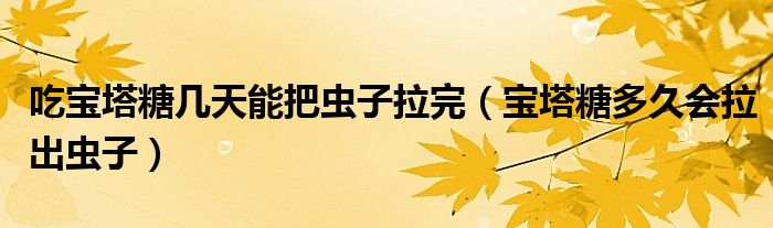 大家好,小生來為大家講解下。吃寶塔糖幾天能把蟲子拉完,寶塔糖多久會拉出蟲子很多人還不知道,現(xiàn)在讓我們一起來看看吧!