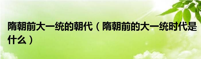 大家好,小生來為大家講解下。隋朝前大一統(tǒng)的朝代,隋朝前的大一統(tǒng)時代是什么很多人還不知道,現(xiàn)在讓我們一起來看看吧!