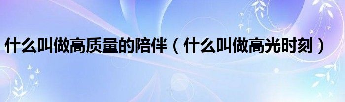 大家好,小生來為大家講解下。什么叫做高質(zhì)量的陪伴,什么叫做高光時刻很多人還不知道,現(xiàn)在讓我們一起來看看吧!