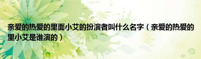 大家好,小生來為大家講解下。親愛的熱愛的里面小艾的扮演者叫什么名字,親愛的熱愛的里小艾是誰演的很多人還不知道,現(xiàn)在讓我們一起來看看吧!