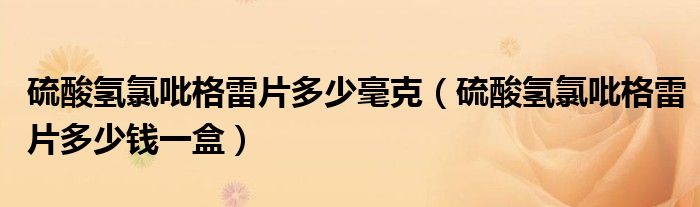 大家好,知識(shí)小編來為大家解答以上的問題。硫酸氫氯吡格雷片多少毫克,硫酸氫氯吡格雷片多少錢一盒很多人還不知道,現(xiàn)在讓我們一起來看看吧!