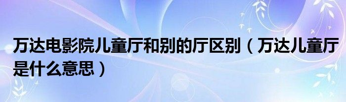 大家好,小生來(lái)為大家講解下。萬(wàn)達(dá)電影院兒童廳和別的廳區(qū)別,萬(wàn)達(dá)兒童廳是什么意思很多人還不知道,現(xiàn)在讓我們一起來(lái)看看吧!