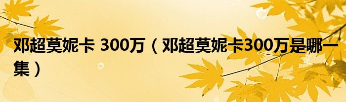 大家好,小生來為大家講解下。鄧超莫妮卡 300萬,鄧超莫妮卡300萬是哪一集很多人還不知道,現(xiàn)在讓我們一起來看看吧!