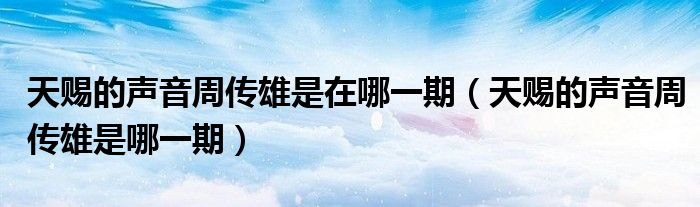 大家好,小生來為大家講解下。天賜的聲音周傳雄是在哪一期,天賜的聲音周傳雄是哪一期很多人還不知道,現(xiàn)在讓我們一起來看看吧!