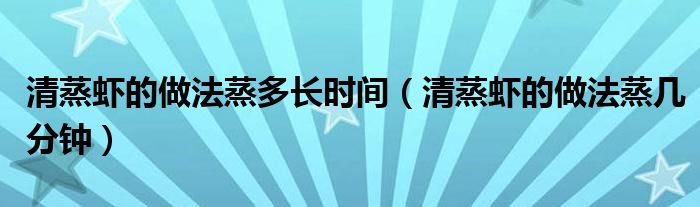 大家好,小生來為大家講解下。清蒸蝦的做法蒸多長時間,清蒸蝦的做法蒸幾分鐘很多人還不知道,現(xiàn)在讓我們一起來看看吧!