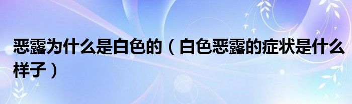 大家好,知識小編來為大家解答以上的問題。惡露為什么是白色的,白色惡露的癥狀是什么樣子很多人還不知道,現(xiàn)在讓我們一起來看看吧!