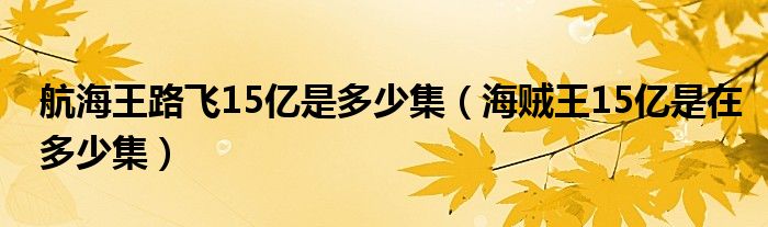 大家好,小生來(lái)為大家講解下。航海王路飛15億是多少集,海賊王15億是在多少集很多人還不知道,現(xiàn)在讓我們一起來(lái)看看吧!
