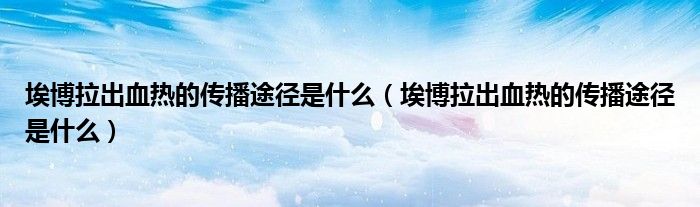 大家好,知識(shí)小編來(lái)為大家解答以上的問(wèn)題。埃博拉出血熱的傳播途徑是什么,埃博拉出血熱的傳播途徑是什么很多人還不知道,現(xiàn)在讓我們一起來(lái)看看吧!