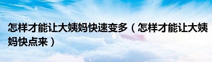 大家好,知識小編來為大家解答以上的問題。怎樣才能讓大姨媽快速變多,怎樣才能讓大姨媽快點來很多人還不知道,現(xiàn)在讓我們一起來看看吧!
