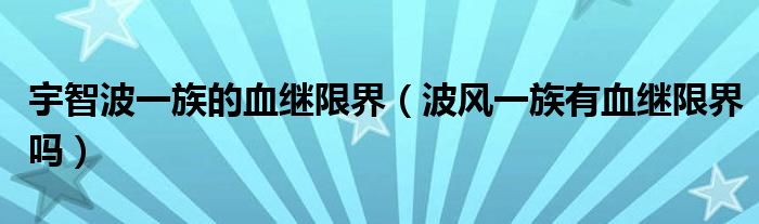 大家好,小生來為大家講解下。宇智波一族的血繼限界,波風(fēng)一族有血繼限界嗎很多人還不知道,現(xiàn)在讓我們一起來看看吧!