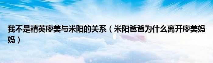 大家好,小生來(lái)為大家講解下。我不是精英廖美與米陽(yáng)的關(guān)系,米陽(yáng)爸爸為什么離開廖美媽媽很多人還不知道,現(xiàn)在讓我們一起來(lái)看看吧!