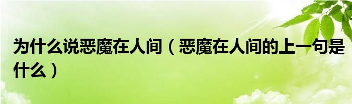 大家好,小生來為大家講解下。為什么說惡魔在人間,惡魔在人間的上一句是什么很多人還不知道,現(xiàn)在讓我們一起來看看吧!