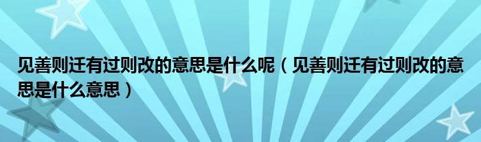大家好,小生來(lái)為大家講解下。見(jiàn)善則遷有過(guò)則改的意思是什么呢,見(jiàn)善則遷有過(guò)則改的意思是什么意思很多人還不知道,現(xiàn)在讓我們一起來(lái)看看吧!