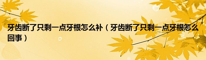 摘要大家好,知識小編來為大家解答以上的問題。牙齒斷了只剩一點牙根怎么補,牙齒斷了只剩一點牙根怎么回事很多人還不知道,現(xiàn)在讓我們一起來看