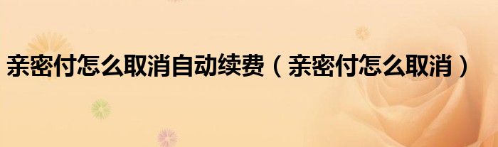 大家好,小生來為大家講解下。親密付怎么取消自動續(xù)費,親密付怎么取消很多人還不知道,現(xiàn)在讓我們一起來看看吧!