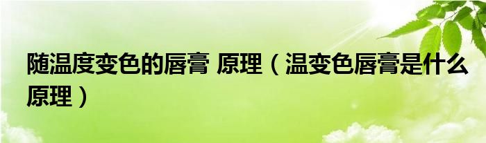 大家好,小生來為大家講解下。隨溫度變色的唇膏 原理,溫變色唇膏是什么原理很多人還不知道,現(xiàn)在讓我們一起來看看吧!