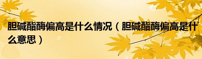 摘要大家好,知識小編來為大家解答以上的問題。膽堿酯酶偏高是什么情況,膽堿酯酶偏高是什么意思很多人還不知道,現(xiàn)在讓我們一起來看看吧!1、