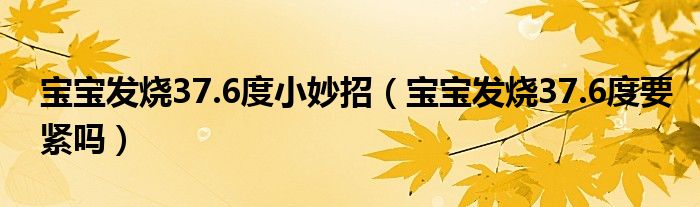 摘要 大家好,知識(shí)小編來為大家解答以上的問題。寶寶發(fā)燒37 6度小妙招,寶寶發(fā)燒37 6度要緊嗎很多人還不知道,現(xiàn)在讓我們一起來看看吧!發(fā)燒37 6